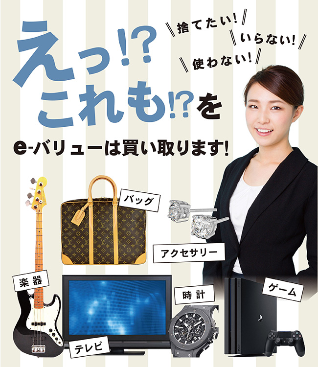 実家の大掃除の際に来て頂きました。処分するものが多かったので、処分業者に頼もうかと思ったのですが、母がたまたまネットでe-バリューのHPをみて電話をしました。かなりの量があったはずですが、手際よく査定してもらった結果捨てるはずのものがだいぶ良いお値段になりました。